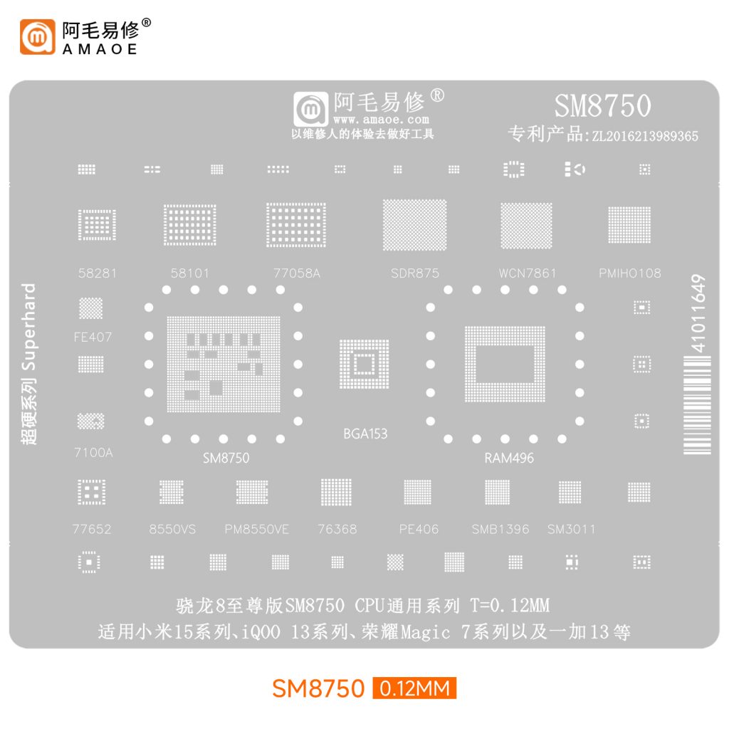 AMAOE BGA STENCILS SM8750 CPU Series for Xiaomi 15 Series , Honor Magic 7 , Oneplus 13