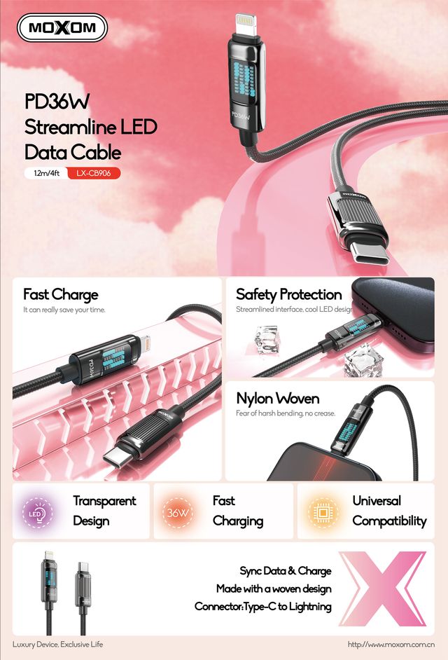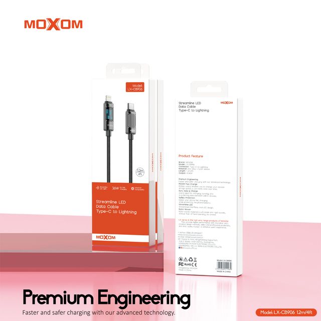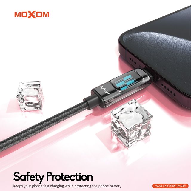 MOXOM LX-CB906 1.2 Meter 36W Fast Charging Type-C to Phone LED Data Cable