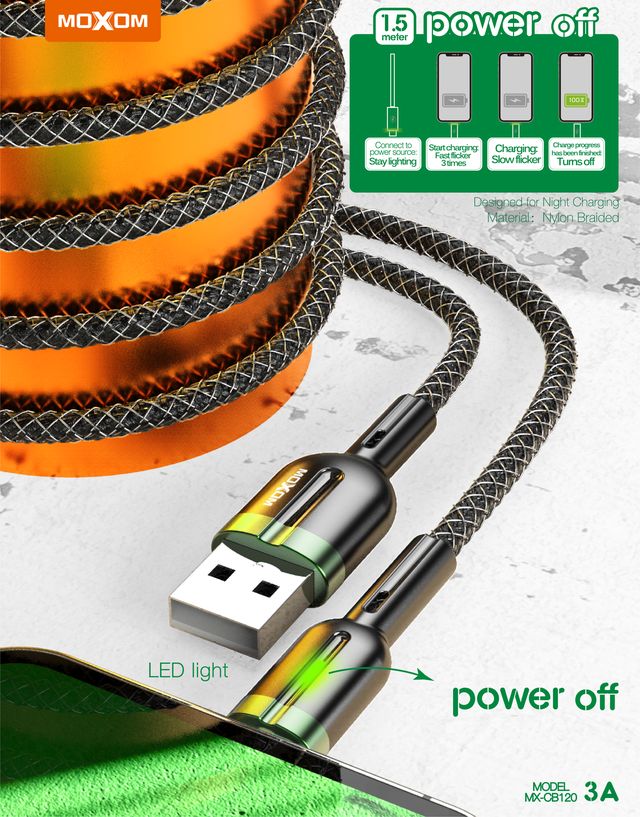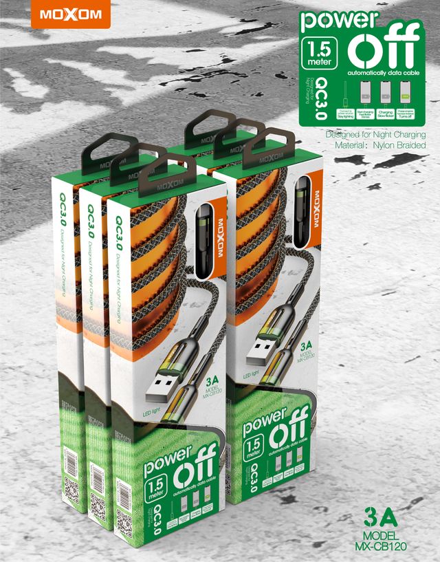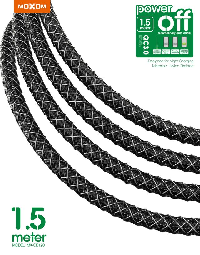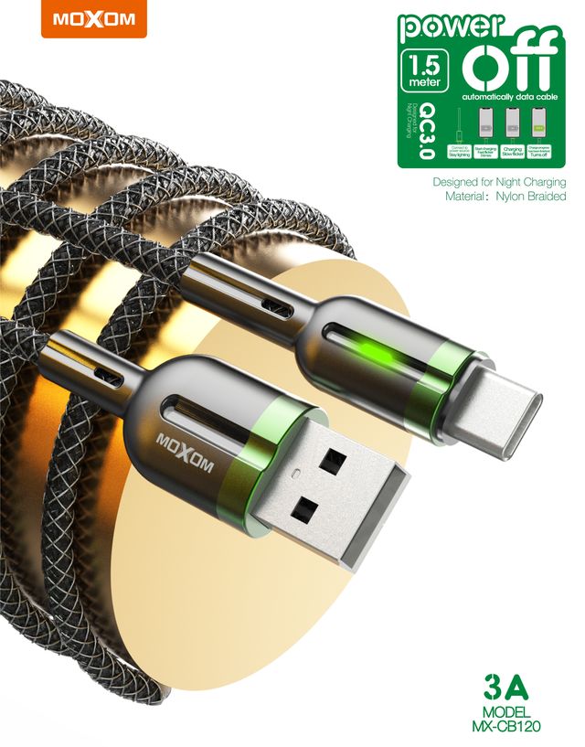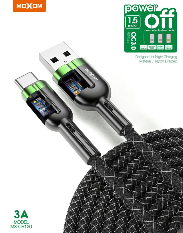 MOXOM MX-CB120 1.5 Meter 3A Auto Power Off Data Cable