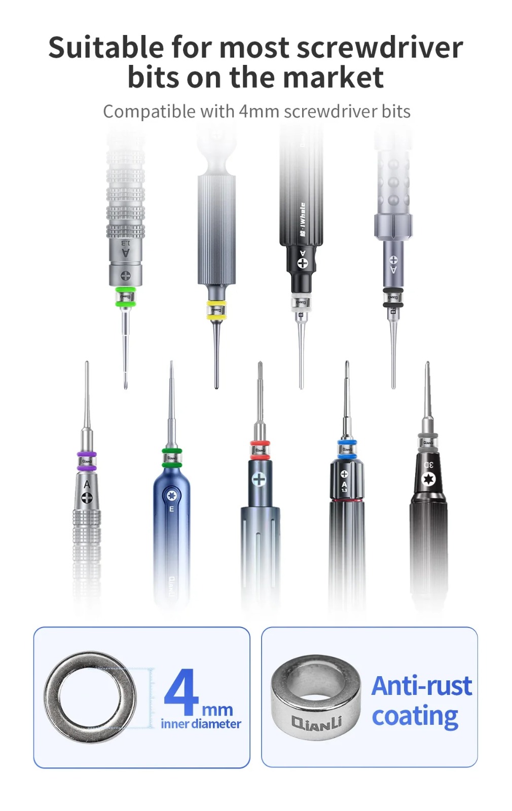 -Suitable for most screwdriver bits on the market, compatible with 4mm screwdriver bits
