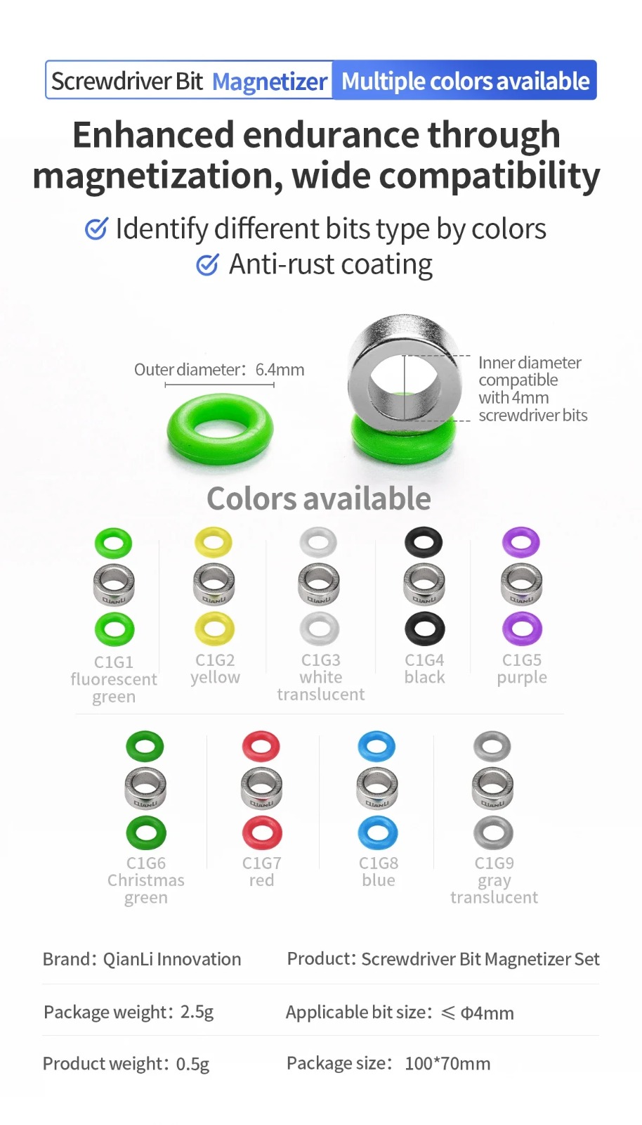 QIANLI Screwdriver Bit Magnetizer Set C1G1~9 (4MM)