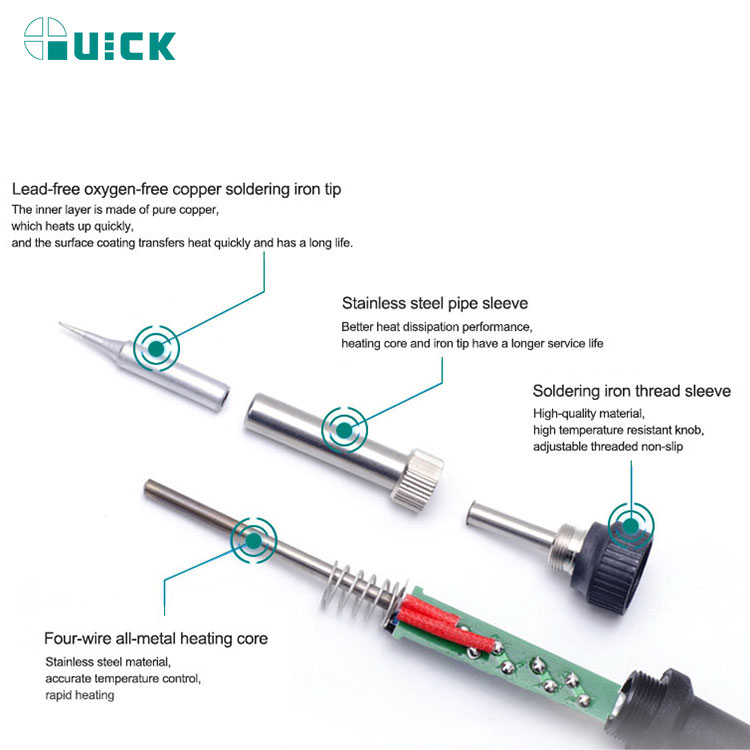 -Soldering iron tip the inner layer is made of pure copper, which heats up quickly, and the surface coating transfers heat quickly and has a long life.