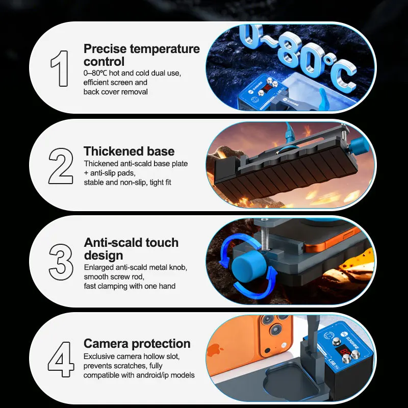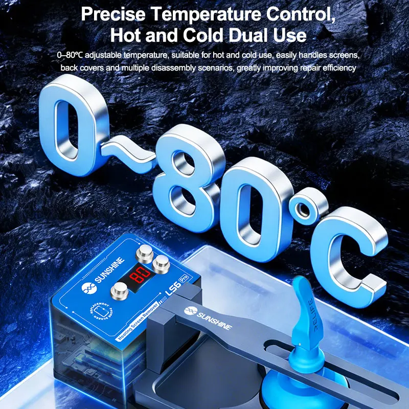 -Precise Temperature Control Hot and Cold Dual Use: 0-80°C adjustable temperature, suitable for hot and cold use, easily handles screens. back covers and multiple disassembly scenarios, greatly improving repair efficiency