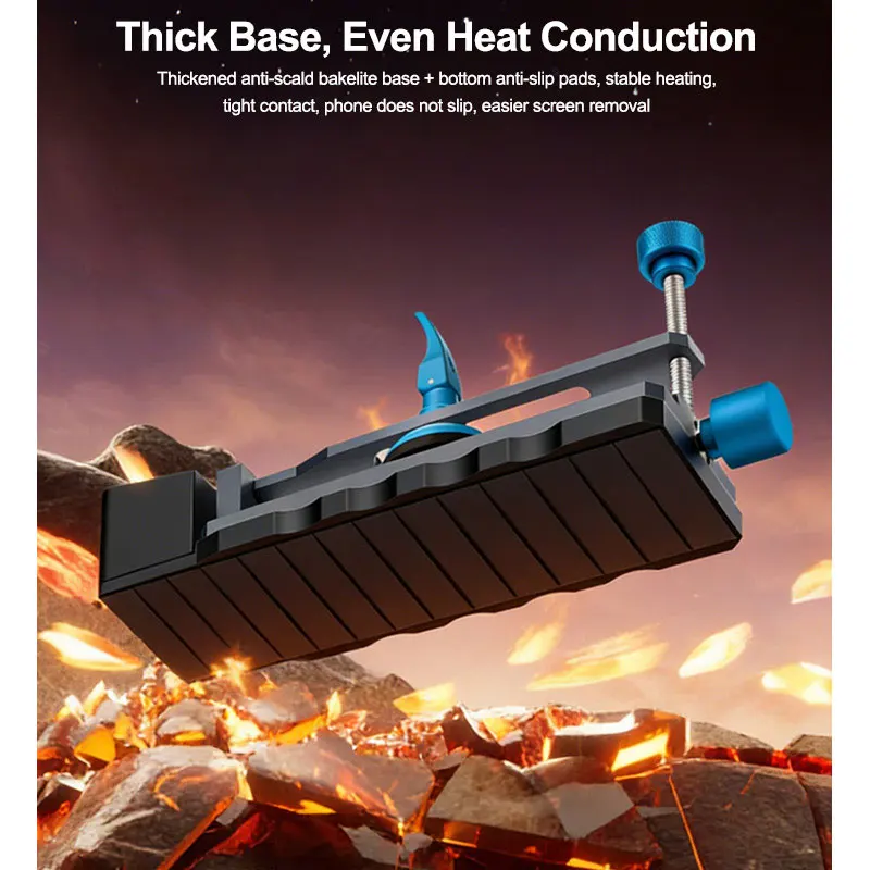 -Thick Base, Even Heat Conduction: Thickened anti-scald bakelite base bottom anti-slip pads, stable heating, tight contact, phone does not slip, easier screen removal